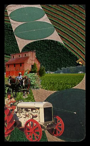 The image of the glasses come from a c. 1960's advertisement in National Geographic. These old images are lovely in the collage, as their soft colors and diffuse lines give collage a “painterly” feel.